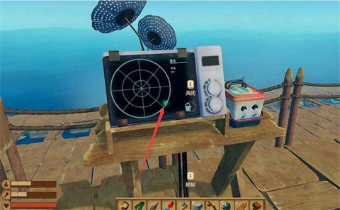 2、观察雷达,让雷达离开雷达站600-700米左右,雷达上的坐标会刷新,刷新后雷达上出现绿色的点,绿点的位置时就是资源丰富的大岛屿,前往岛屿。