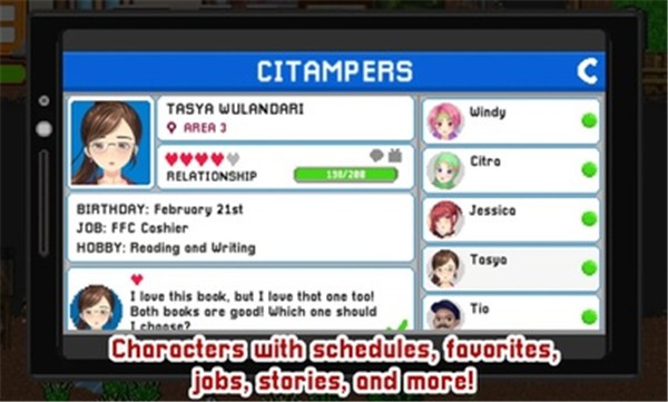 在正版的爱情和生活模拟RPG游戏中,各种探索和剧情互动的玩法正等着玩家前来体验。这款游戏提供了有趣且充满冒险的玩法,玩家可以享受到极其有趣的模式和探索体验。此外,游戏中包含众多NPC角色,玩家可以与他们交流并一同探险。恋爱养成的趣味玩法也为游戏增色不少,整体游戏内容非常精彩。