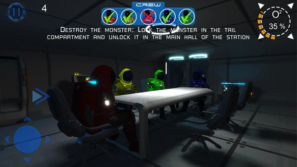 2.成为危险的怪物,破坏飞创中的设施,避免船员修补好飞船,并躲避人们的视线,消灭所有船员。