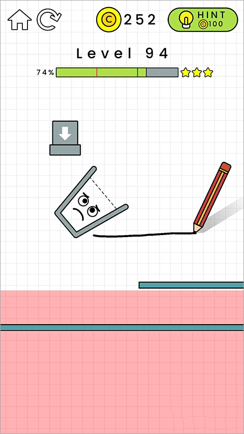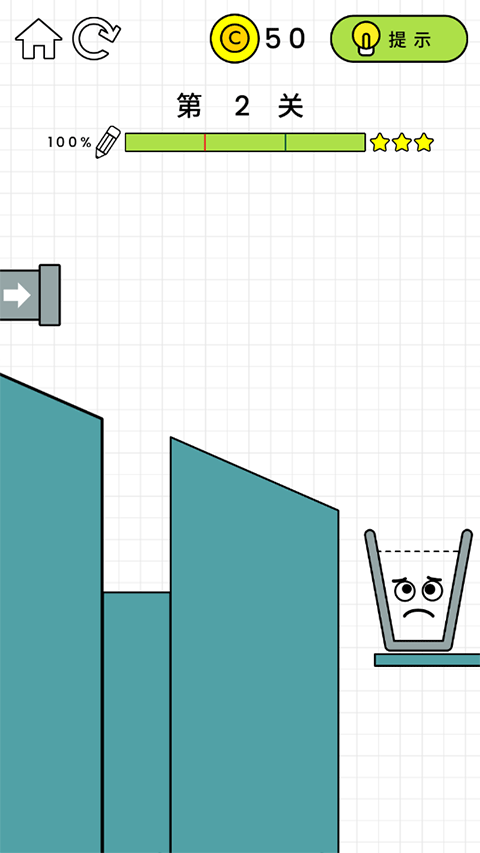 2、这只玻璃杯愁眉苦脸,皆因它里面空空如也。你的使命是画上一条线,让液体填满玻璃杯,好让它重新绽放笑颜!