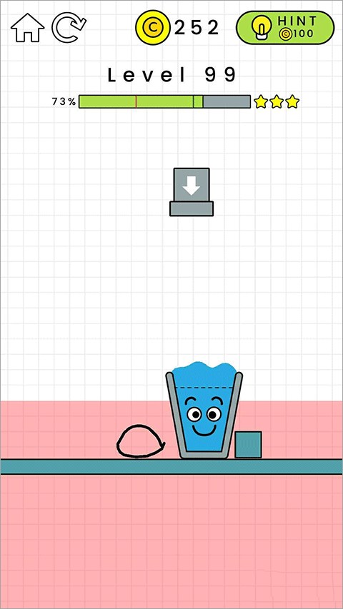 第99关需要画个物件使玻璃杯重新直立,从而顺利接水。