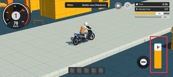 玩法也是非常简单,就是点击右边的加速按钮开始不断地加速行驶即可。