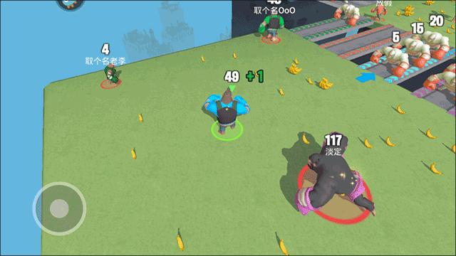 3、在抢香蕉模式中,玩家需要一点点长大,打败更加强大的对手才能取得一个好的名次;
