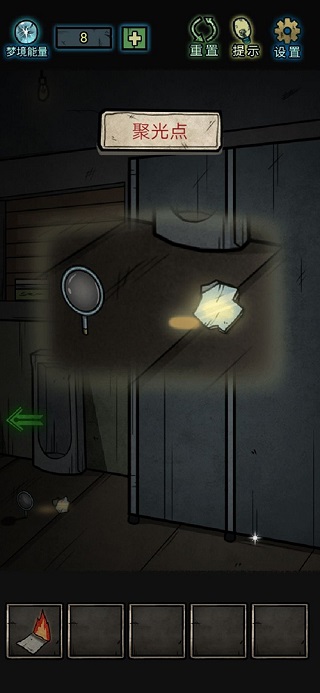 9、从抽纸盒子得到梦境能量。把凸透镜和镜子碎片都放在地上;