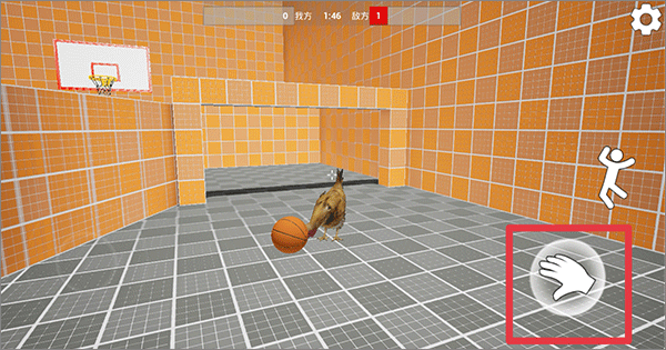 3、接着将球运至己方篮球框下方,点击篮球图标进行投篮,率先达到规定分数的人赢得胜利。