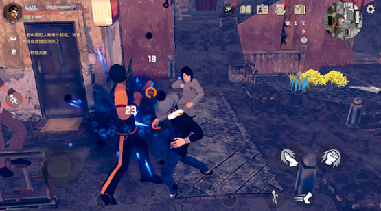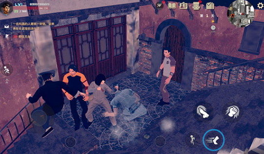 通过虚拟轮盘和按钮来【控制人物的打斗】,不同的攻击方式,动作模组也不一样。