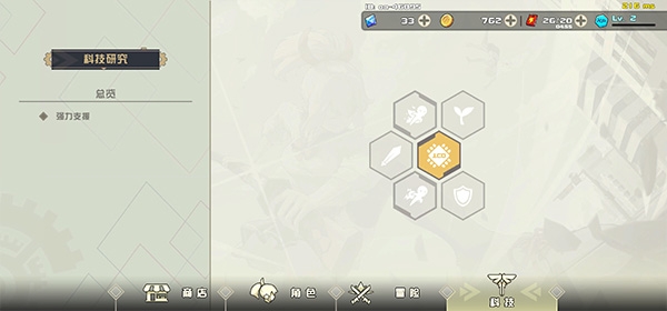 点击科技面板使用金币研究科技加点各项属性也可以增加角色战斗力;