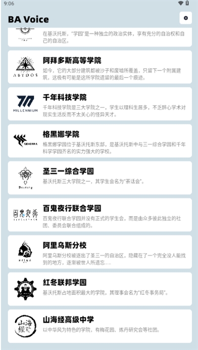 超多的角色语音,包括了热门角色,例如才羽桃、千年爱丽丝等。