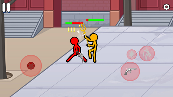 玩家在游戏中操控一个火柴人,利用简单的横版摇杆操作操控火柴人进行热血格斗。