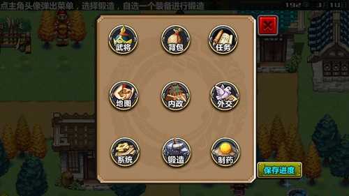 点击屏幕左上角的人物头像,可以看到基础选项,包括武将、背包、任务、地图、内政等,不过很多系统都是后期才会开放的。
