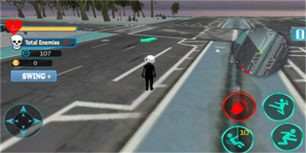 维加斯派出了一些喽啰到处进行破坏,这是给你一点颜色瞧瞧,抓住它们,予以正义的回击,突破重重阻碍去把最大的坏人抓住,你就能成为这个城市的英雄了!玩家可以通过侧踢和飞踹来进行战斗,也有拳头猛击适合近战,当遇见高楼时还能通过攀爬键来追击楼上的小人,让他们无处可逃。