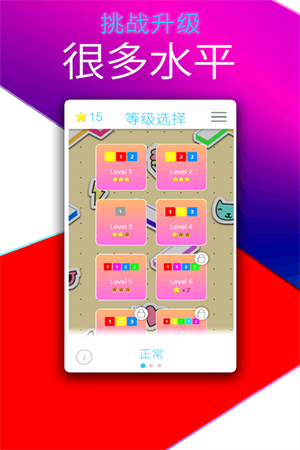 -丰富的游戏关卡,多种游戏难度,使用获得的星星解锁新的关卡,为你开启更多的创作空间。