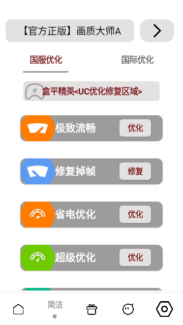 而且功能的分类很详细,基本都是一键操作的,小巧绿色且适合各种低端手机,千元机体验极致游戏体验。