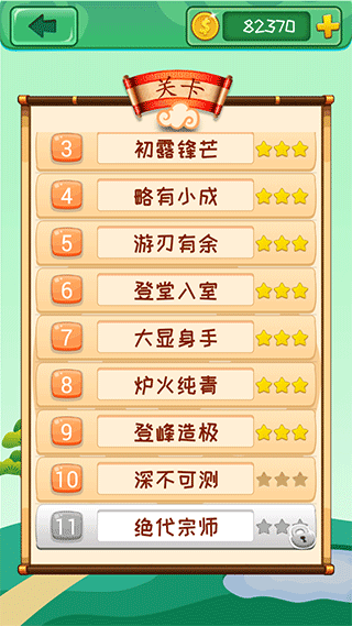 3、一款完全免费、极其有趣且经典的成语消除游戏。
