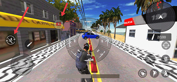 发现敌人后,点击左边的枪械按钮选择一把枪,医疗包可以为角色增加血量