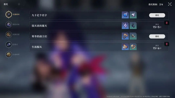 委托:等同于原神的探索派遣,不过种类更多了,可以弄得经验书,怪物掉落物等资源