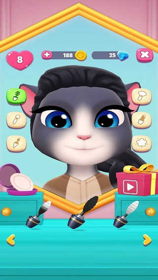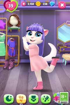 安吉拉也是需要美美的!除了日常的梳毛外,我们可以在化妆间里面,帮助安吉拉涂口红、涂眼影、画眉毛,每个化妆品都有不同的颜色和样式,我们可以打造安吉拉的独特风格。只有你想不到,没有游戏做不到。我们在游戏中可以帮助安吉拉换肤色,换发型,或者换日常的服装,衣服的款式非常多,总有一款你喜欢。