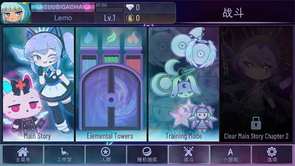 在这个小游戏中Lemo和Yuni两人会以一组舞步来示意接下来要求让玩家输入的箭头(两侧,上下左右)。玩家在本游戏中有5次机会,其中一个出错则扣一次,扣完游戏结束。Easy难度下每1分可获得3倍Bits,每10分可获得一个Gems;Hard难度下每1分可获得4倍Bits,每5分可获得一个Gems。
