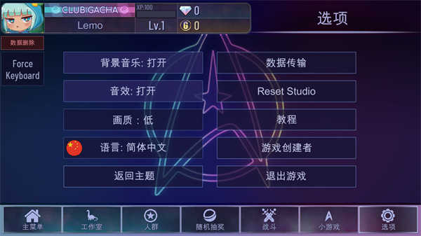 点开选项,还支持对背景音乐、音效、画质等进行修改。