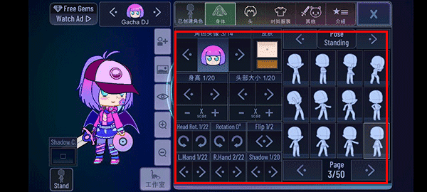 在人群中,玩家还可以对角色进行修改;