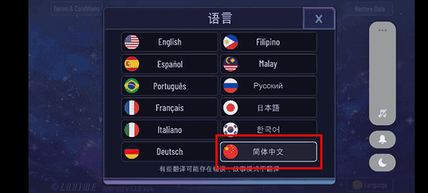 点击右下角,选择语言为“简体中文”;