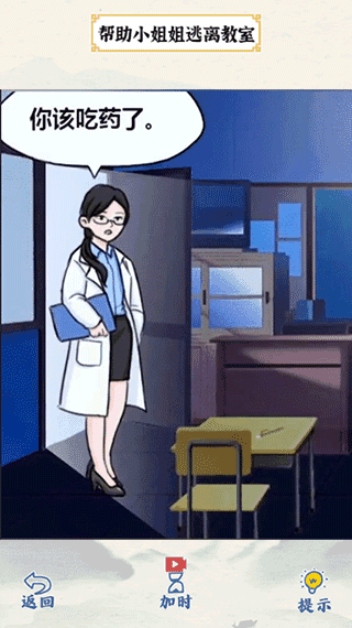 再滑动门拴就可以了,就会出现医生说该吃药了,就通关了。