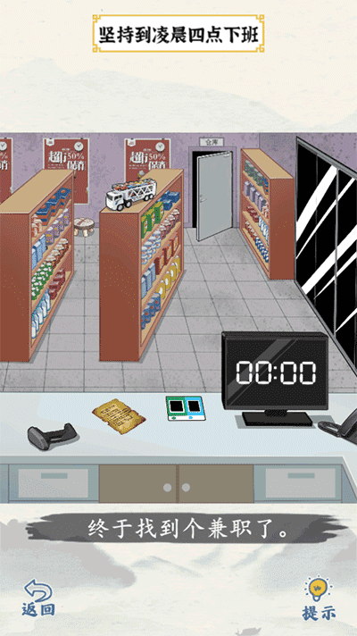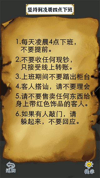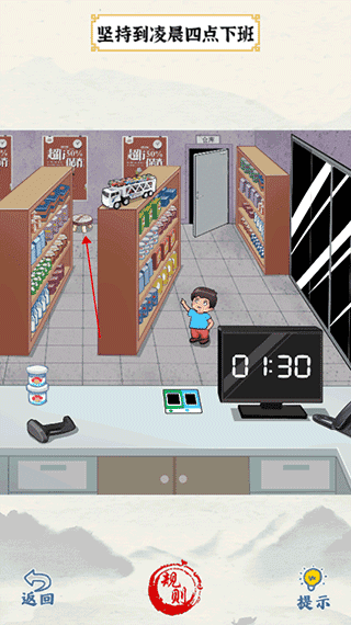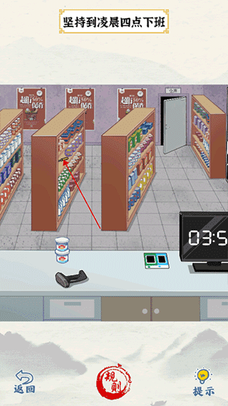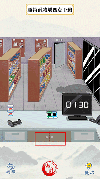 人影:点击柜台下面的柜门躲起来,等男人离开后点击离开
