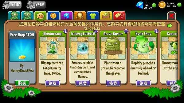 植物和装扮都是可以免费购买的,