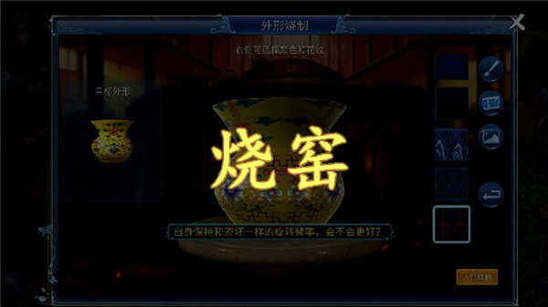 塑形>上釉>烧窑>题款这四大步骤传承了中国古老的制瓷工艺,完美还原在了游戏中,指尖轻触感受文化的底蕴。