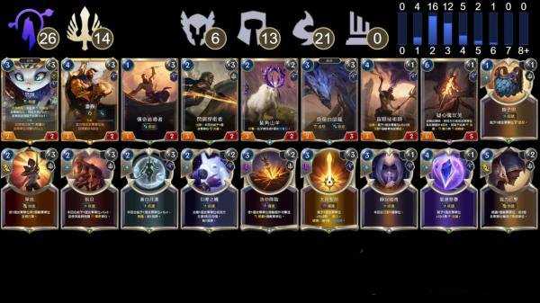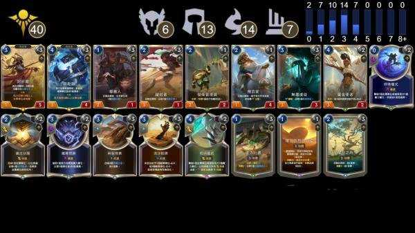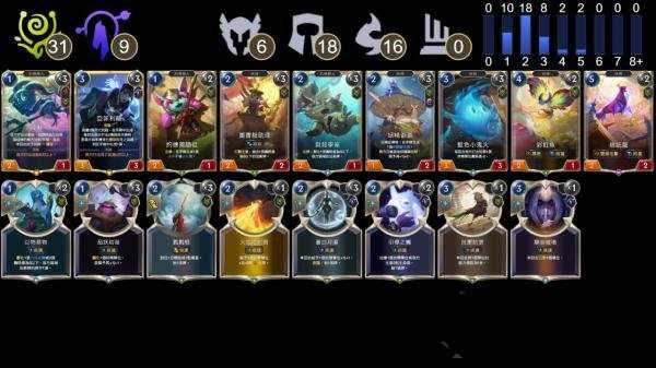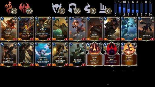 每个区域都有着其特有的卡牌,每套牌组可以在挑选两个区域内的卡牌组成一套完整的牌组