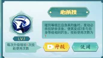 碰到比自己的等级高的鱼,可以发动技能斩杀他,让他编程和自己等级一样的鱼