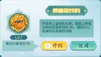 开局带上金钱豹头像,地图上所有动物向你游来持续70秒,期间可以吃掉所有高级的动物