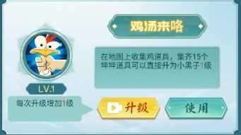 在地图上收集鸡汤道具,集齐15个鸡汤道具可以直接升1级