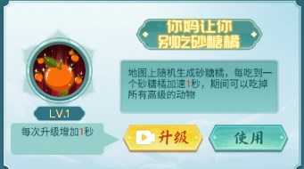 地图上随机生成砂糖橘,每吃到一个砂糖橘加速1秒,期间可以吃掉所有高级的动物