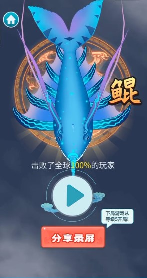 第一阶段 蝌蚪、青蛙、金鱼、乌龟、鲤鱼、大鱼、鲸鱼、鲨鱼、蛟蛇、神龙。 这个阶段没有什么难度,玩家只要注意一下就可以合成神龙了,因为体积不是很大所以还是比较灵活了,玩家也很容易凑出三个龙。