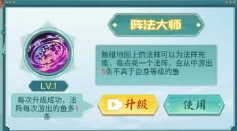 触碰地图上的法阵可以给法阵点亮,会从中游出7个不高于自己的鱼