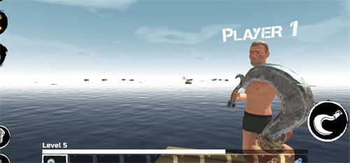 最开始的计划,出生时你只有4个板子活动空间加一个钩子,鲨鱼会不定期的咬你的板子,如果你采取不抵抗态度,鲨鱼是不咬烂一块不罢休的。所以尽快用你手头的钩子勾取资源,水上资源分三类: