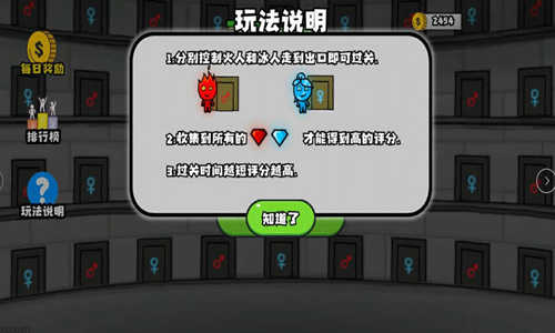 注意保护人物,火焰人必须避开水,冰霜人则不能碰到火。