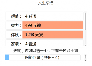 6、最终离世后可查看一生总结并选择重新开始。这就是人生重开模拟器的游戏玩法,希望能对大家有所帮助。