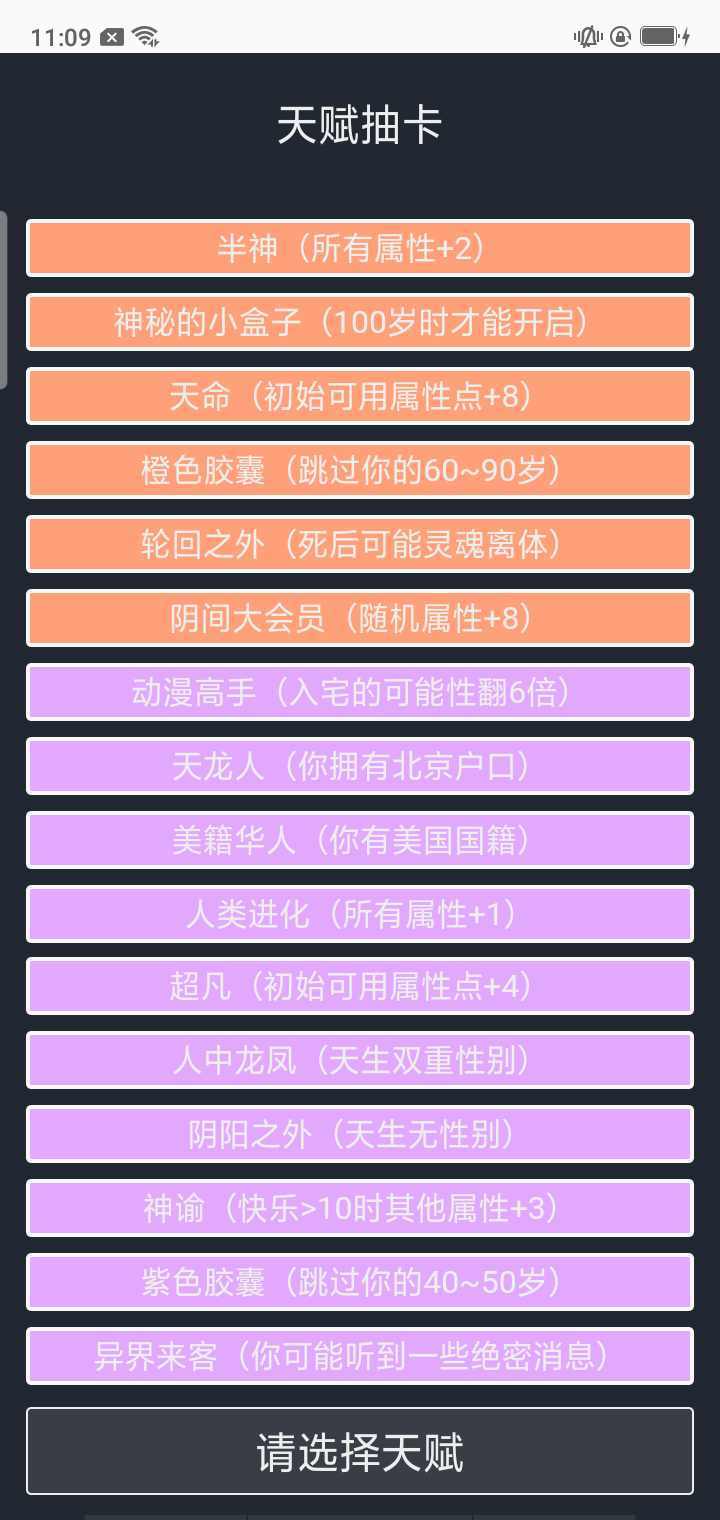 首先要为自己这趟重开的人生进行抽卡,十选三配出一套十分有价值的天赋。
