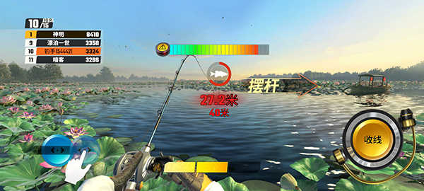 钓到的鱼重量越重,稀有度越高,评分越高,玩家需努力提升自己的得分排行。