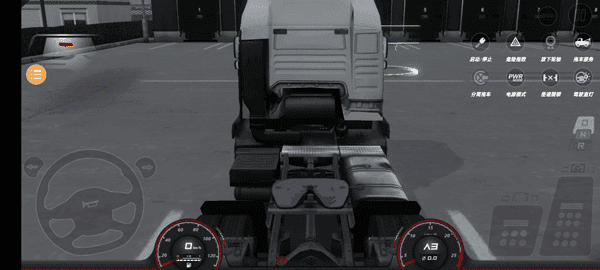 5、游戏界面右上角可以显示启动/停止、危险指数、拖车服务、分离拖车、电源模式等功能;