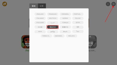 点击右上角的齿轮,可以切换语言,把游戏设置成简体中文Space