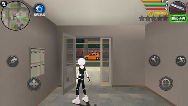 游戏玩法:左侧遥感,主要控制移动,右侧攻击、跳跃,遇到载具还会浮生驾驶控件,同时最为亮眼的就是绳索这一功能的加入,让你只需要瞄准目标即可快速远距离的进行移动,与蜘蛛侠的技能相仿。