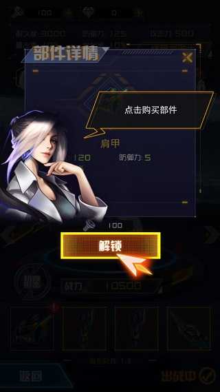 现在让我们为机甲购买部件,点击可以查看属性和购买。