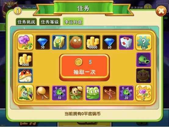 达成等级可以在普通档位和高级档位领取平底锅币,前往“幸运转盘”抽取稀有内容,赛季限定植物“豌豆药剂师”等你收入囊中!