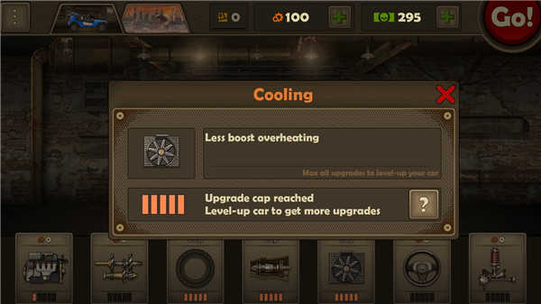 战车在车库进升级,能够对战车的引擎、变速箱、推进器、轮胎等进行升级购买,每一部位都对战车的性能有着极大的提升,一部顶级的战车总是能够带领玩家冲向终点,所以,抓紧升级你的战车吧。