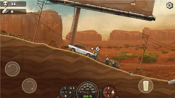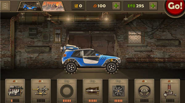 在战车行进的过程中,路上会充满了障碍物和僵尸,到后面的关卡会会出现大型的僵尸和更为坚硬的路障出现,这些都是为了阻止战车的前行,尽可能躲开或飞跃这些障碍物是到达更远距离的不二选择。在跑过几次后会对关卡的地形有一个熟悉,寻找一个合适使用推进器的路段是取得胜利的重要手段,这能够让你战车飞起来,小伙子,多攒点钱,让你的车飞起来吧。