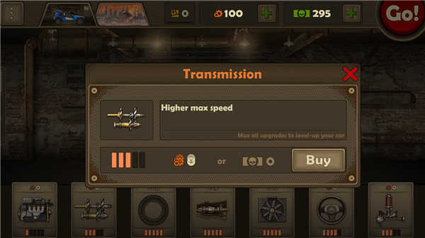说升级之前我们先来说说金币的来源,其实每一关我们都能获得金币这种获得的方式我们称为刷关,是游戏当中最主要的金币来源方式之一,怎么说呢就是通关时间在加上钻石僵尸的数量最后会给我们带来一笔不菲的金币,一辆车能够改造的地方有八个,引擎、传动装置、轮胎、枪械、推进器、负重、装甲、油箱这些都是非常有用的,我这里主要主要现在升级油箱这样我们才能跑得更远,然后有钱的话就把所有东西都给升满,都是非常有用的对我们撞僵尸或者用最快的速度到达终点都是非常实用的,这个东西的话就没有什么策略好说,自己感觉欠缺了那种就升那种。