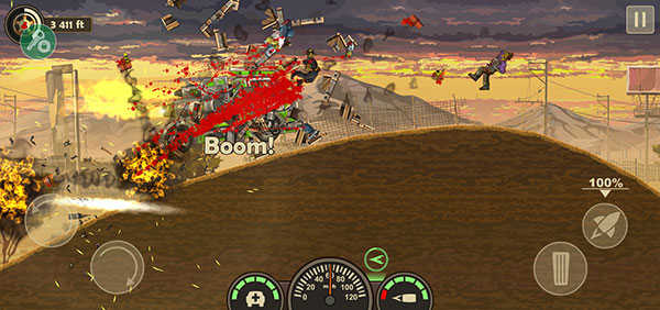 游戏中玩家们需要驾驶汽车将面前的障碍物以及僵尸等都撞开,而且这些都是我们要面对的,躲避不了,并且在撞击的时候会对汽车造成损伤,那么应该如何减少呢?秘诀就是不要直接撞击,我们可以让车头翘起,这样碾压僵尸能够轻松杀死它们,既可以减少伤害也可以避免直接撞击造成的速度延缓。